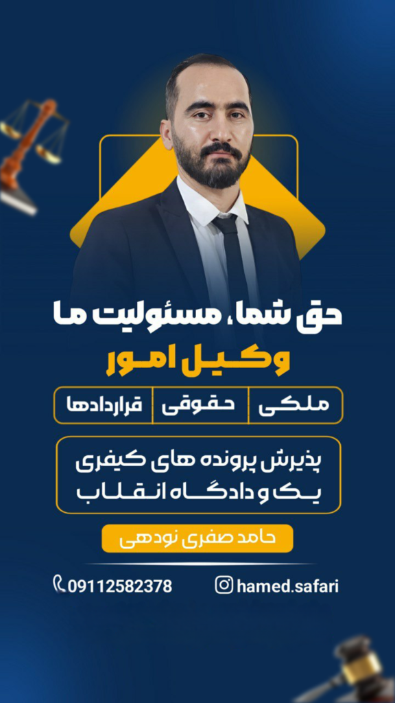 Hamed Safari Nodehi, an Attorney at Law (Mazandaran Bar Assosiation), specializes in real estate and registration disputes as well as criminal cases under the jurisdiction of Criminal Court I and the Revolutionary Court.
